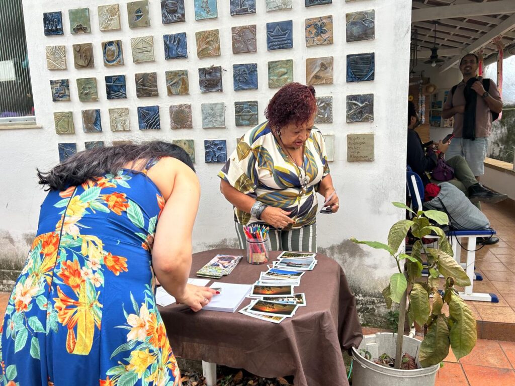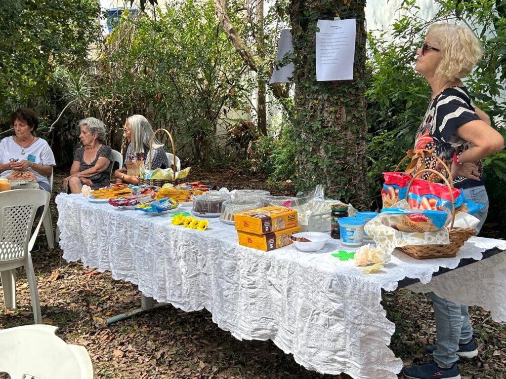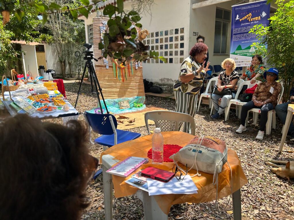 O Festival Ponto com Letra – Escritores em Ação, realizou na Biblioteca Escolar Municipal de Paquetá Joaquim Manuel de Macedo com o apoio da Secretária Municipal de Educação e 1° CRE, na manhã do dia 17/09 uma grande festa. Idealizamos um “Chá Literário” para esse Festival, totalmente inspirados na participação do Grupo de Convivência da terceira idade, atendidos pelo CRAS Dodo da Portela, sob a orientação do Prof. Julio. Há época da realização do FLAMATEC II, elas participaram alegremente das Atividades, por isso pensamos em realizar um Chá Literário voltado especificamente para o público da melhor idade. Utilizamos o espaço ao ar livre da BEM Paquetá, com um dia lindo de Sol, montamos uma bela mesa de café da manhã com doces, biscoitos da sorte, torradas, bolos deliciosos produzidos na própria Ilha , café, sucos e Mate Tamoio que fez muito sucesso entre os participantes. Deixando o ambiente em clima de festa, contamos com o apoio da Marília Galante, escritora e moradora da Ilha, caprichando na decoração do espaço. O articulador da Ilha Digital, José Felipe, esteve conosco fazendo a cobertura ao vivo da atividade. Contamos também com a presença de Kallina Figueiredo, Administradora XXI Região Administrativa – Ilha de Paquetá. Como falei no início, foi uma grande festa!!!