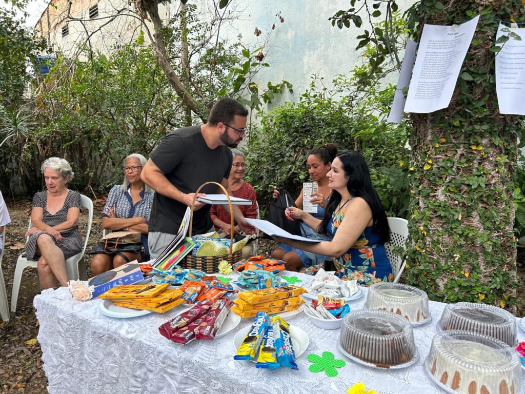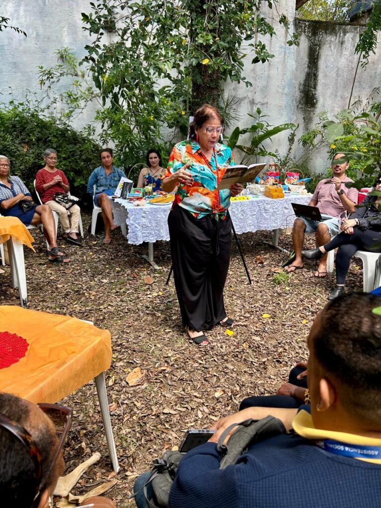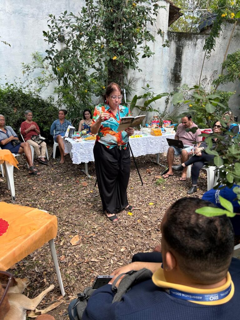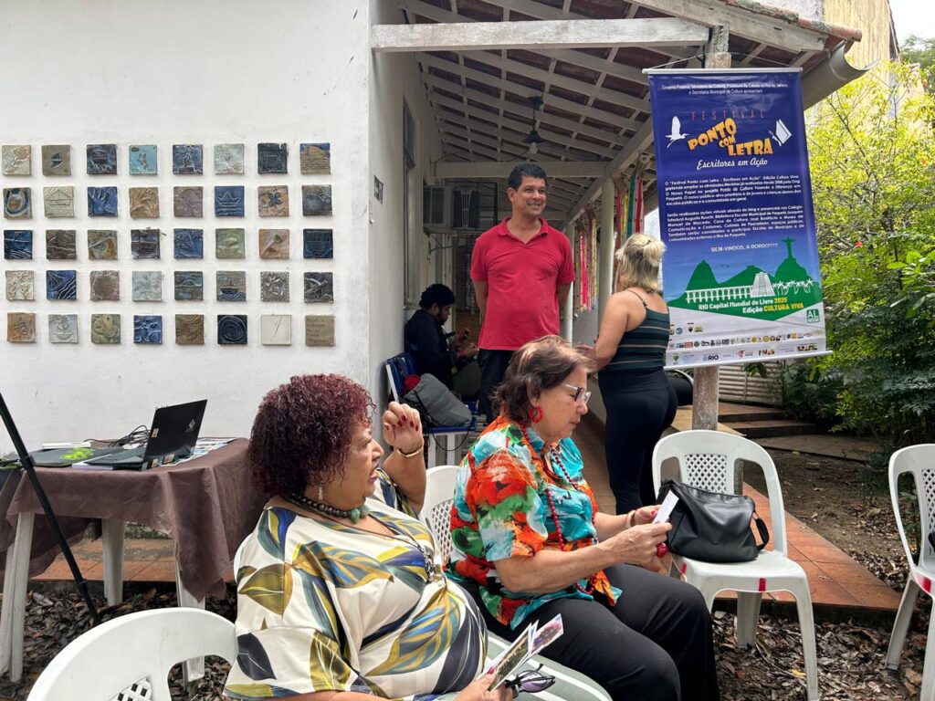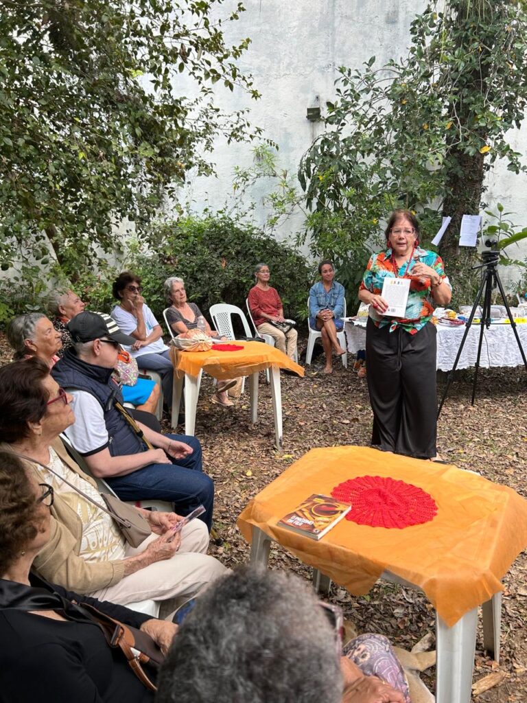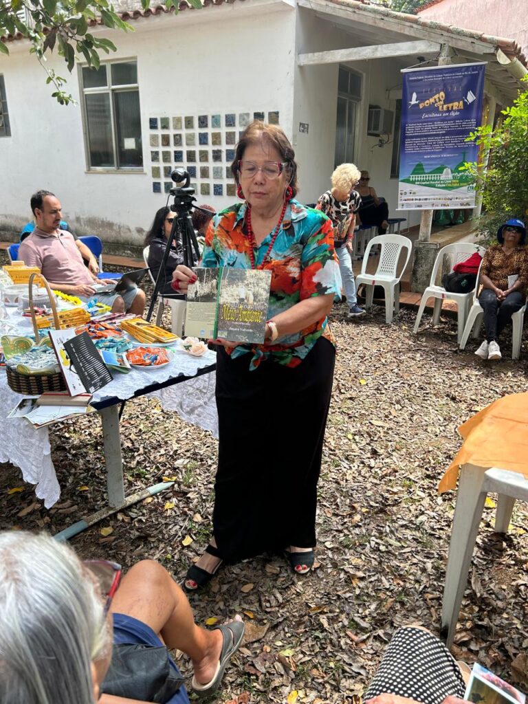 Na manhã festiva do dia 17/09, como uma das atrações do “Chá Literário”, tivemos um intercâmbio com a Autora Juçara Valverde, médica, escritora, poeta e presidente de honra da ABRAMES – Acadêmia Brasileira de Médicos e Escritores. Juçara trouxe alguns de seus livros, dentre eles o “As bocas do Planeta Terra”, livro ilustrado por Joca Gouvêa com conteúdo infanto juvenil através da poesia. O diálogo com a turma de Convivência da terceira idade do CRAS Dodo da Portela, liderada pelo Prof. Julio, trouxe um pouco sobre a trajetória da autora, incluindo o motivo que a fez começar a escrever, foi lindo esse momento. Juçara aproveitou o evento e fez doação de livros para a Biblioteca Escolar Municipal de Paquetá Joaquim Manuel de Macedo. O diálogo também contou com as participações especialíssimas da escritora Lígia Feijó, super parceira do Ponto de Cultura Fazendo a Diferença em Paquetá e que também já fez participação no nosso Festival Ponto com Letra – Escritores em Ação, e de Lúcia Mattos, professora, escritora, Presidente da seção Rio da ACLAPTCTC – Academia Capixaba de Letras e Artes de Poetas Trovadores e membro integrante do Comitê Gestor do nosso Festival. A literatura estava muito bem representada, né mesmo?