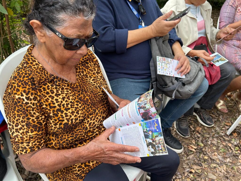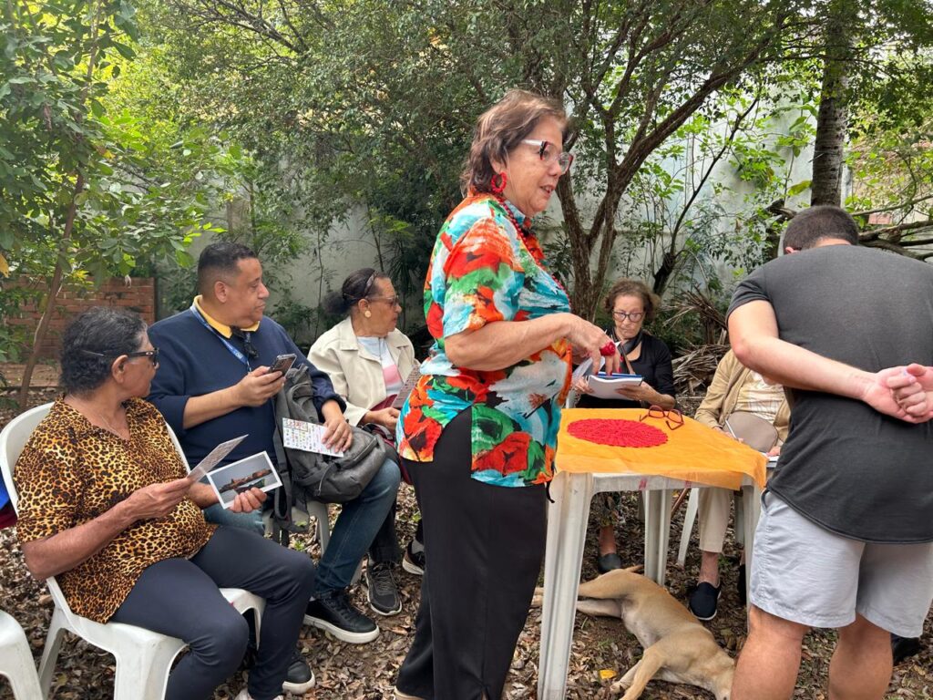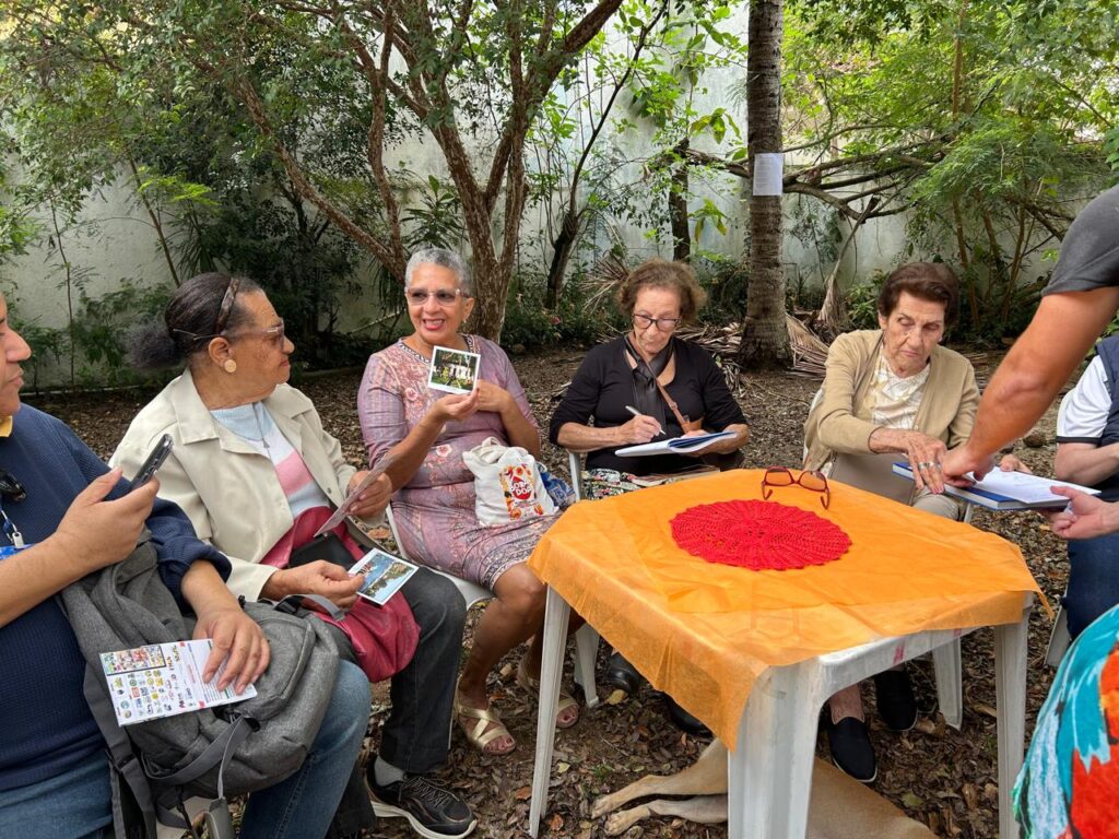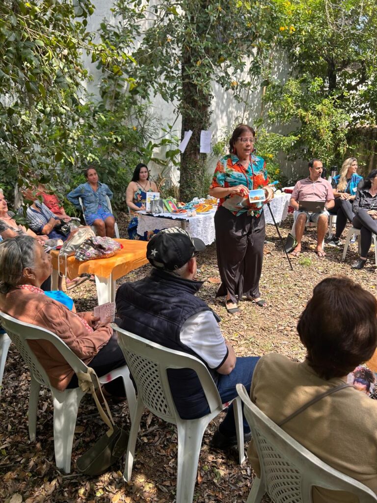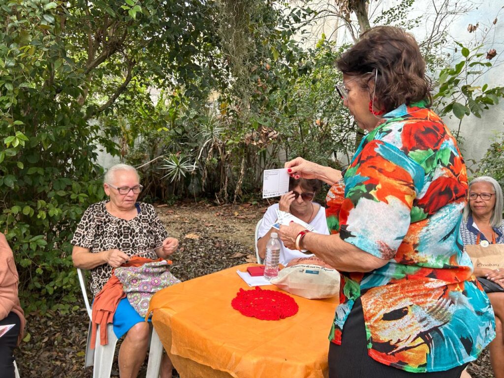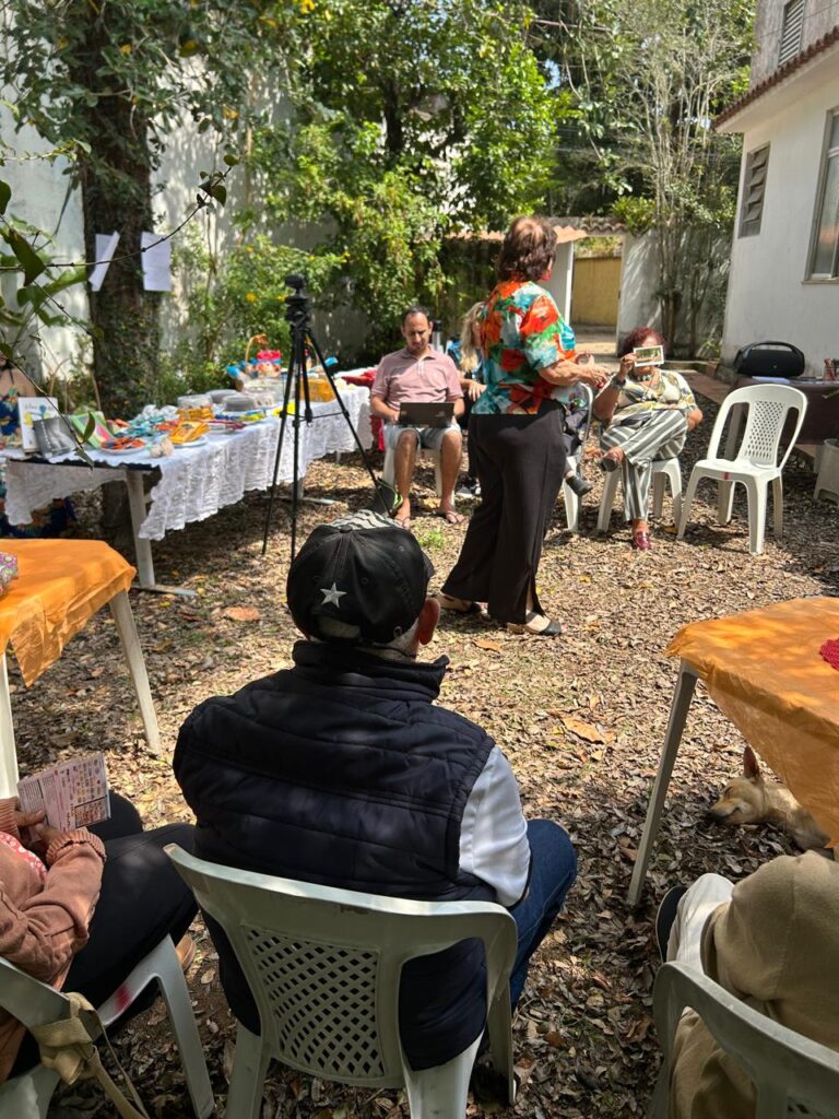 Na manhã festiva do dia 17/09, como uma das atrações do “Chá Literário”, tivemos um intercâmbio com a Autora Juçara Valverde, médica, escritora, poeta e presidente de honra da ABRAMES – Acadêmia Brasileira de Médicos e Escritores. Juçara trouxe alguns de seus livros, dentre eles o “As bocas do Planeta Terra”, livro ilustrado por Joca Gouvêa com conteúdo infanto juvenil através da poesia. O diálogo com a turma de Convivência da terceira idade do CRAS Dodo da Portela, liderada pelo Prof. Julio, trouxe um pouco sobre a trajetória da autora, incluindo o motivo que a fez começar a escrever, foi lindo esse momento. Juçara aproveitou o evento e fez doação de livros para a Biblioteca Escolar Municipal de Paquetá Joaquim Manuel de Macedo. O diálogo também contou com as participações especialíssimas da escritora Lígia Feijó, super parceira do Ponto de Cultura Fazendo a Diferença em Paquetá e que também já fez participação no nosso Festival Ponto com Letra – Escritores em Ação, e de Lúcia Mattos, professora, escritora, Presidente da seção Rio da ACLAPTCTC – Academia Capixaba de Letras e Artes de Poetas Trovadores e membro integrante do Comitê Gestor do nosso Festival. A literatura estava muito bem representada, né mesmo?