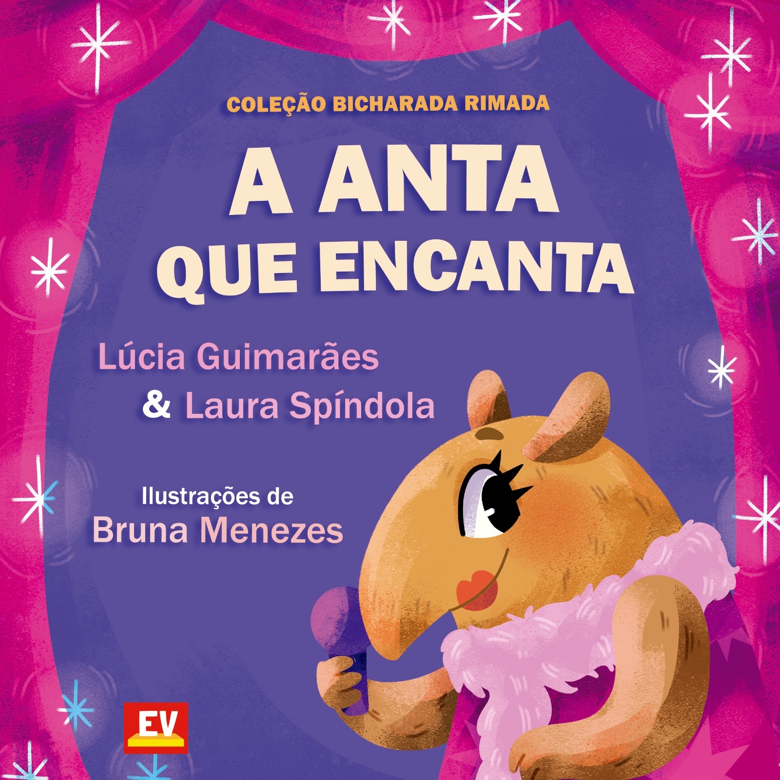 Sinopse:Todo escrito em versos rimados, A Anta que Encanta conta a história de Samanta, a famosa cantora que acabou ficando resfriada bem na véspera de subir ao palco! Será que ela vai se recuperar a tempo da grande apresentação? Com autoria de Laura Spíndola e Lúcia Guimarães e ilustrações de Bruna Menezes, este é o quarto volume da Coleção Bicharada Rimada, que traz histórias protagonizadas por bichos curiosos e bem engraçados.Podem ter certeza que a brincadeira de fazer rimas vai encantar toda a família!Sobre as autoras:Laura Spíndola e Lúcia Guimarães são escritoras e as idealizadoras da Estante Volante.Lúcia é responsável pelas aventuras da Lila Liloca e as divertidas rimas dos Tchucos, séries que trazem personagens emblemáticos e já muito queridos pelos pequenos. Focando no público juvenil, Laura assina Os Dois Lados da História e O Tesouro dos Mil Livros, histórias marcadas por muitas reviravoltas, emoções e um forte traço humorístico.Bicharada Rimada é a primeira série que mãe e filha escrevem a quatro mãos.