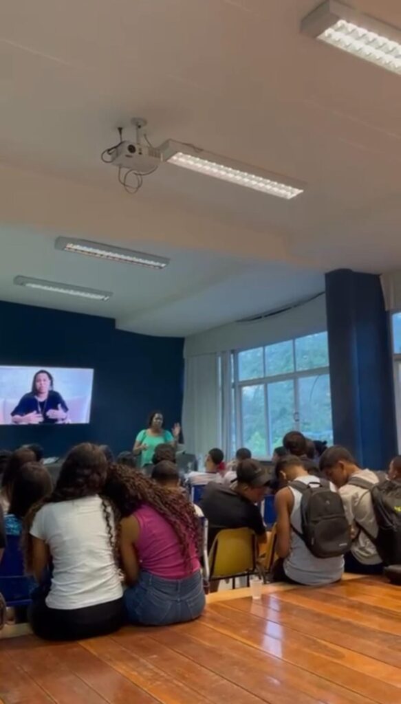 Nesse 26/11, ainda evidenciando as celebrações do Mês da Consciência Negra, Myrian Cristovão, presidente da ONG O Nosso Papel, voluntariamente, promoveu um diálogo com os alunos após a exibição do seu vídeo, “Meninas Negras”. Vídeo produzido durante a pandemia do COVID-19 com o objetivo de incentivar, “lembrar” a todas as meninas e meninos que sonhar se faz necessário para que possamos realizar qualquer coisa que desejamos!!! Foi uma troca regida por muito afeto e escuta, foi lindo.
