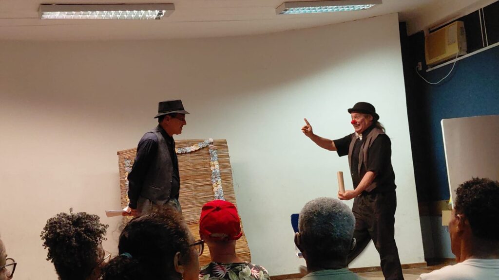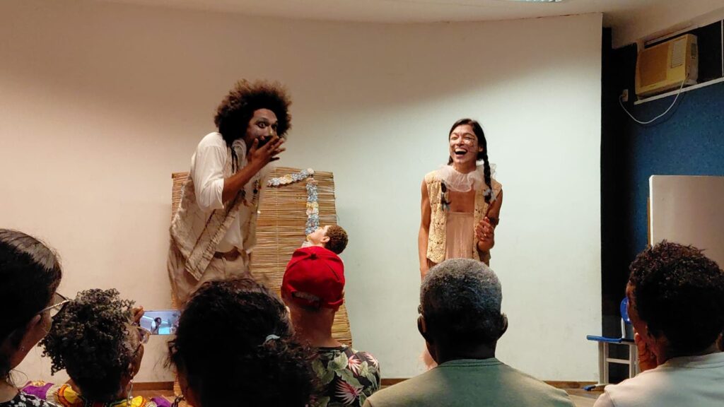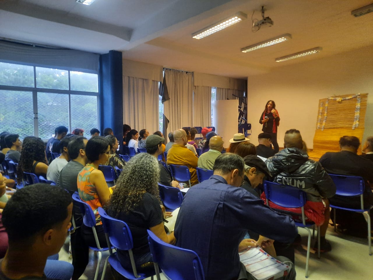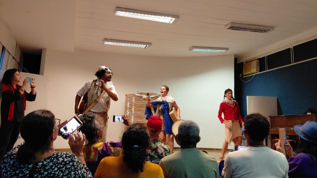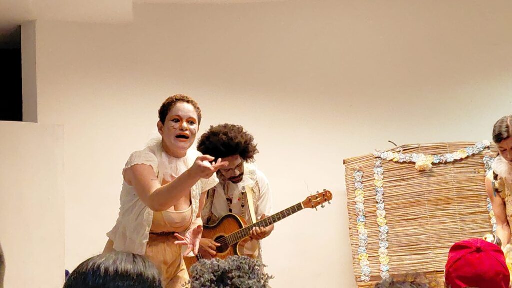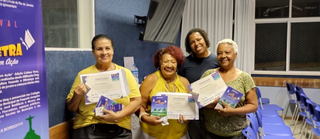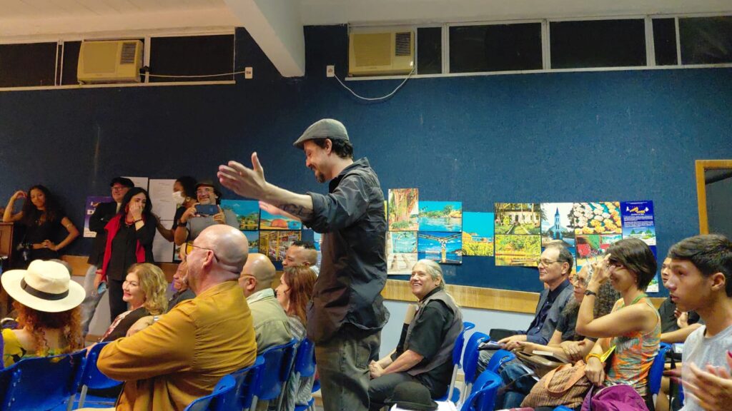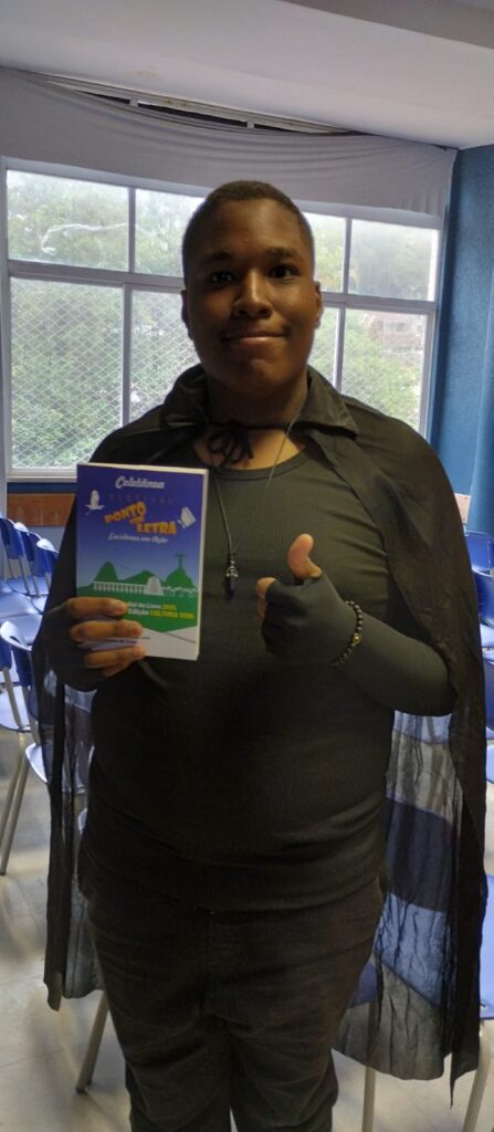 Sabemos que essa viagem não termina por aqui. Gostamos tanto dessa navegação. Tribulação e passageiros tiveram trocas incríveis, um verdadeiro “fazer a diferença” em cada porto que atracamos. Foi maravilhosoooooo. Mas como falei no início dessa conversa, ainda não é o “fim”. No dia 04/12 realizamos o lançamento da Coletânea “Festival Ponto com Letra – Escritores em Ação”, como não se emocionar nesse momento? Essa Coletânea reuni trabalhos de alunos e poetas parceiros ao longo de toda a nossa trajetória. Sobre o tema “A Palavra”, 172 autores, sim, nossos alunos se tornaram autores incríveis, apresentaram seus trabalhos nessas páginas que traduzem um pouquinho do que foi esse ano de Festival Ponto com Letra – Escritores em Ação. O dia foi de pura celebração, inauguramos a exposição “Saraus do Rio”, fotos que retratam um pouco do que vimos ao visitar 15 Saraus que acontecem no Rio de Janeiro, alguns virtualmente, afinal, a literatura está em todas as plataformas. Aproveitando o tema e a festa, também colocamos pelas paredes do C.E Augusto Ruschi a Exposição “Paquetá Foto e Poesia”. Tivemos livro, fotos e um mini sarau com a participação ilustre de representantes de 10 Saraus ali expostos, foi um dos pontos altos dessa noite festiva. Encerrando as apresentações, a Tribo de Artes do Humano fez uma performance das Lendas de Paquetá, e como Bônus ainda tivemos o artista Santiago Galassi e seu parceiro, nos encantando com uma belíssima apresentação. A noite terminou com um jantar delicioso oferecido pelo Colégio e muito bolo e guaraná, exatamente como gostamos por aqui!!! Que noite MARAVILHOSA…